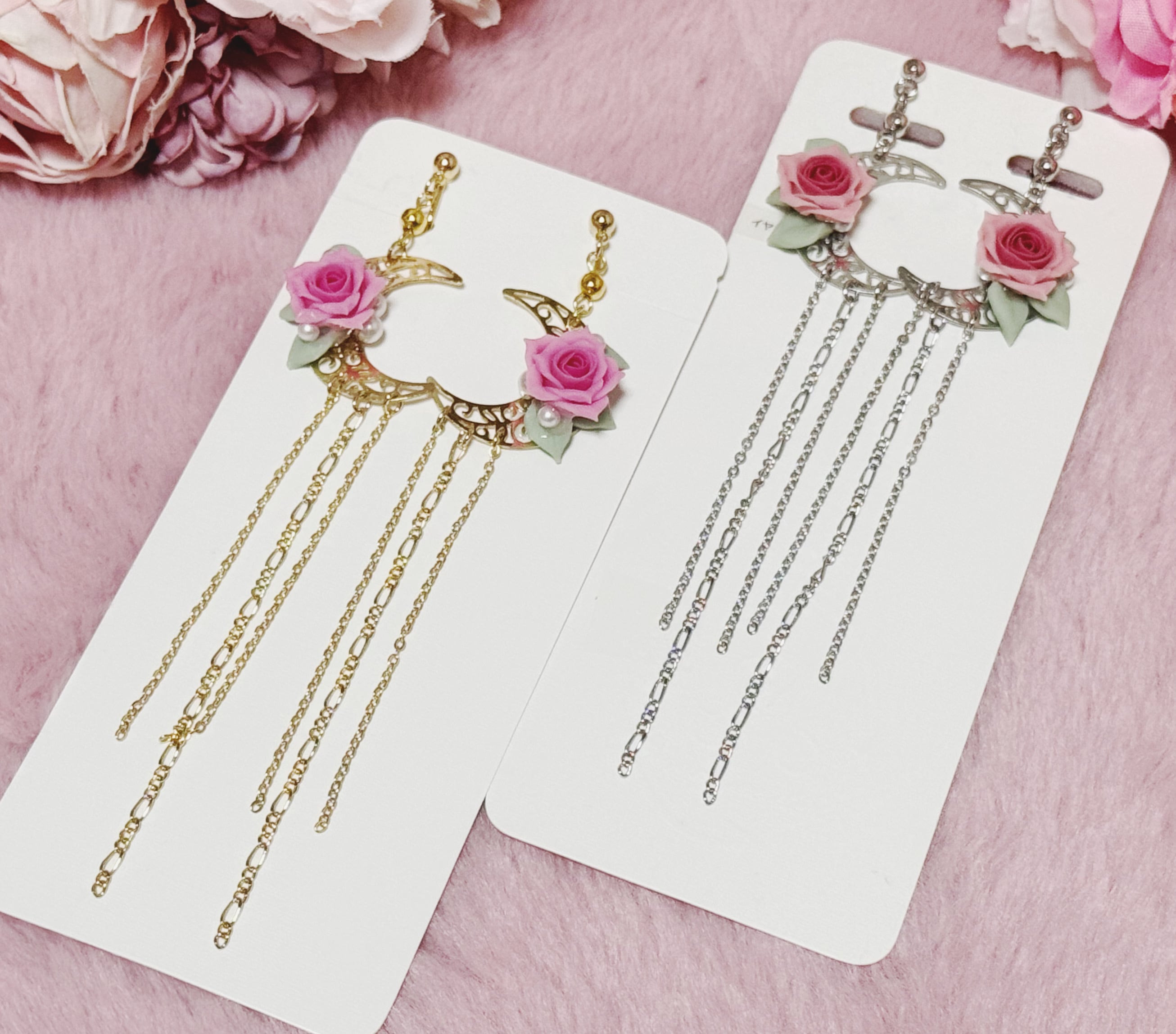 樹脂で出来た花がとても華やかです。可愛らしいながらも子供っぽくない上品な仕上りとなっています✧*。