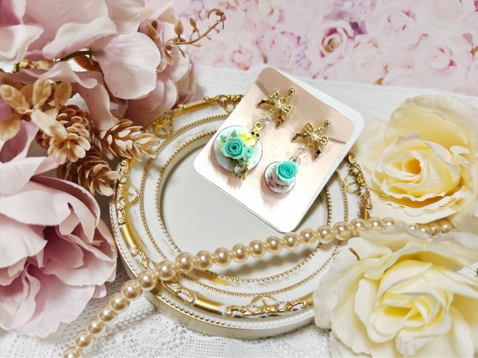 樹脂粘土で出来た薔薇をカップとお皿に載せて