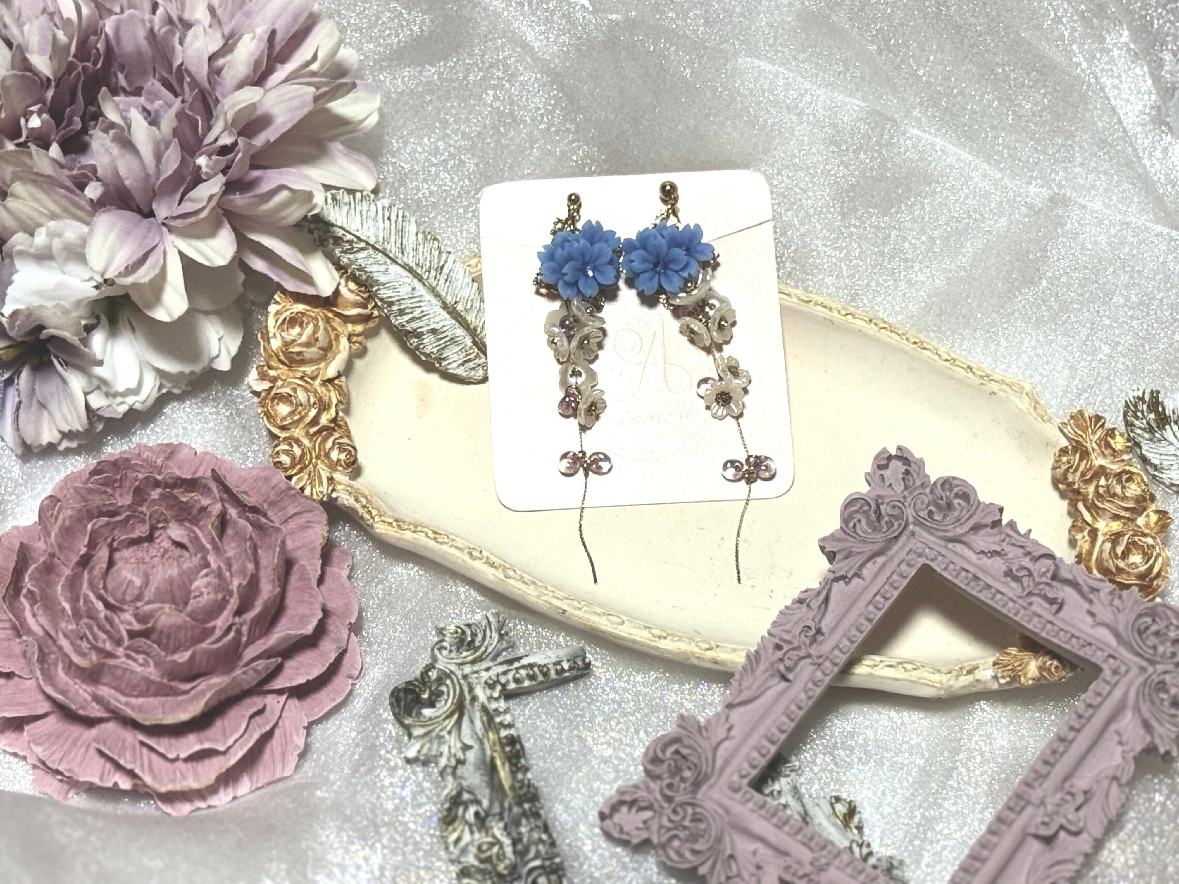珍しい夜桜のイヤリングになります。